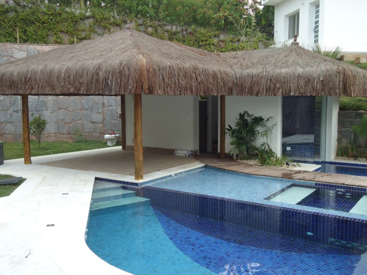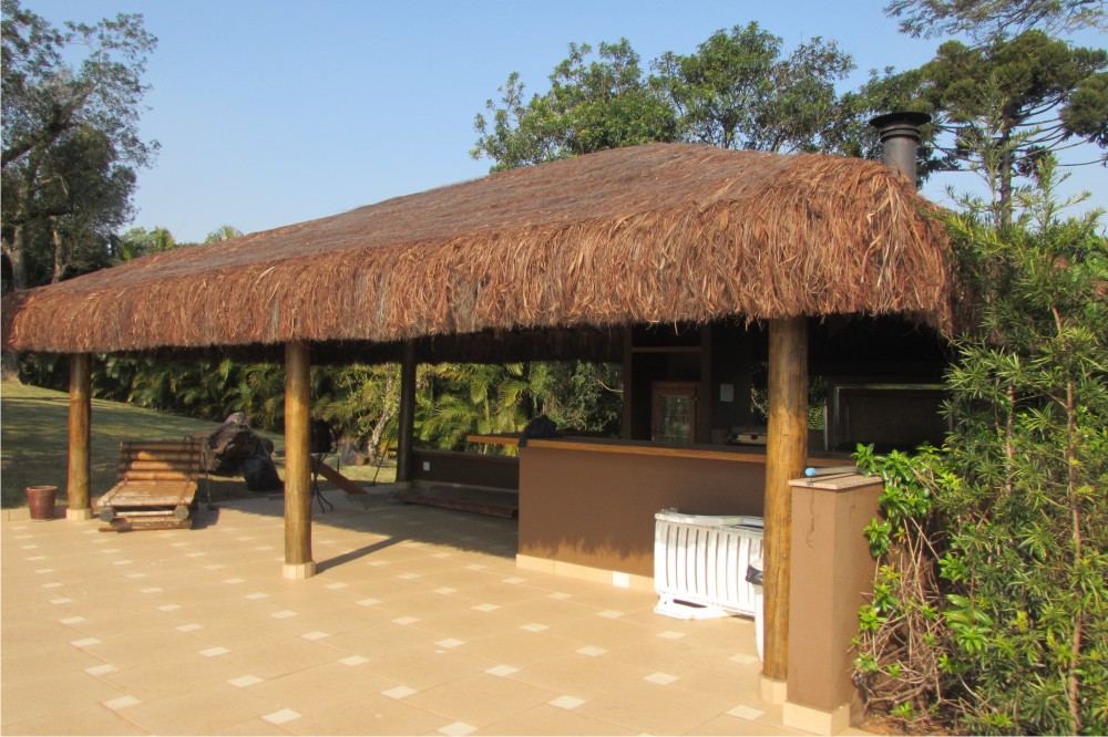 O quiosque de piaçava vem cada vez mais sendo utilizada nas construções tanto modernas como rústicas. ... Do lado de fora, a piaçava é penteada e fica lisa. Sua principal característica é a “franjinha”, franja vertical que se forma como uma cortina que fica com cerca de 30 cm de altura. Feito de eucalipto tratado e fibras de piaçava, produto sustentável de reflorestamento e totalmente natural.